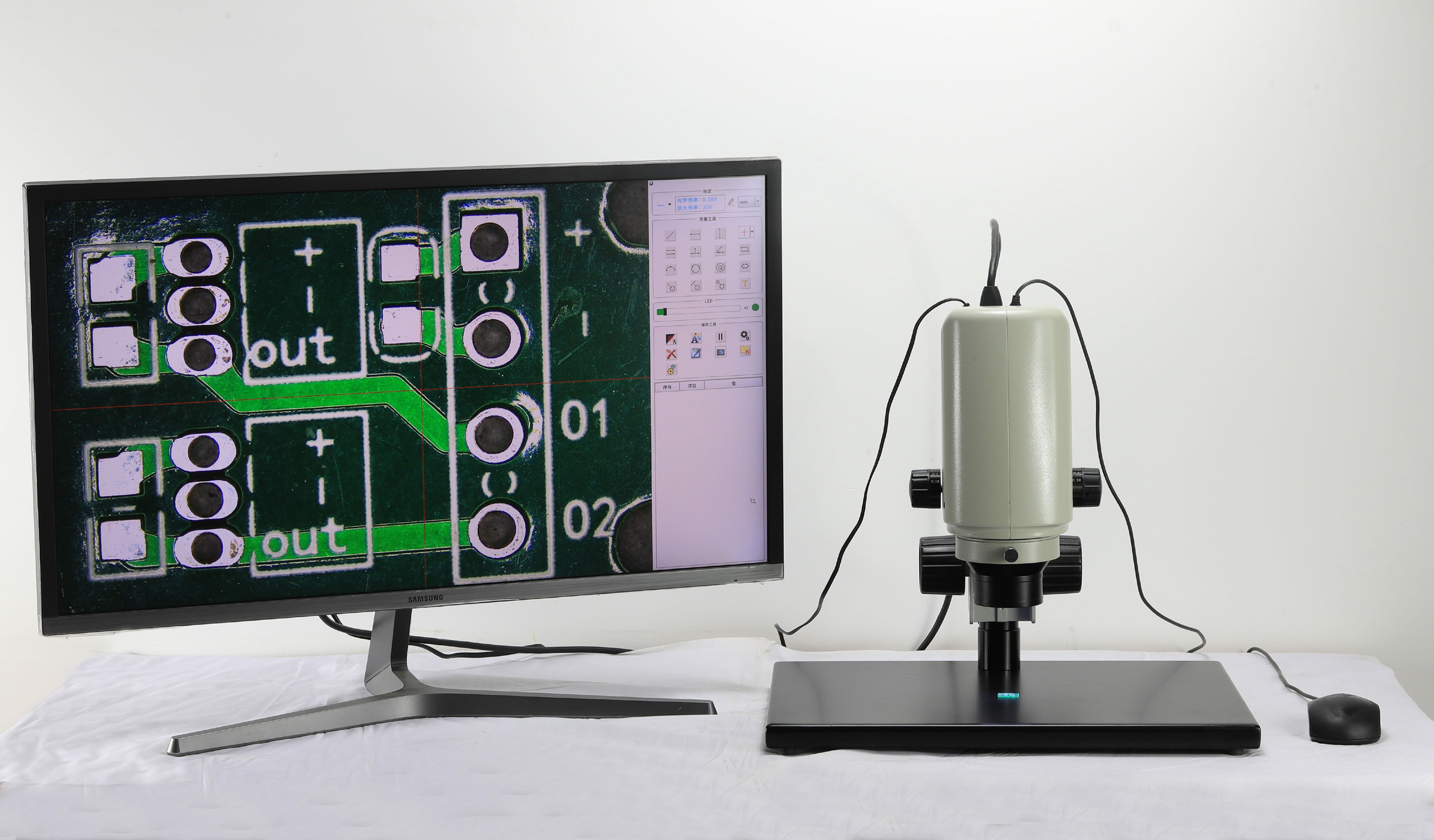 MZVF0425多功能連續變倍視頻顯微一體機具有圖像顯示和測量功能,可在0.38X~2.5X之間十個倍率重復定位。測量時客戶無需重新標定,通過屏幕和鼠標即可進行長度、角度、圓直徑等幾何量的測量。內置LED環形落射光照明,通過屏幕菜單可進行亮度調節。屏幕菜單通過鼠標操作完成,無需電腦和鍵盤。可進行圖像拍照并用U盤進行文件存貯。