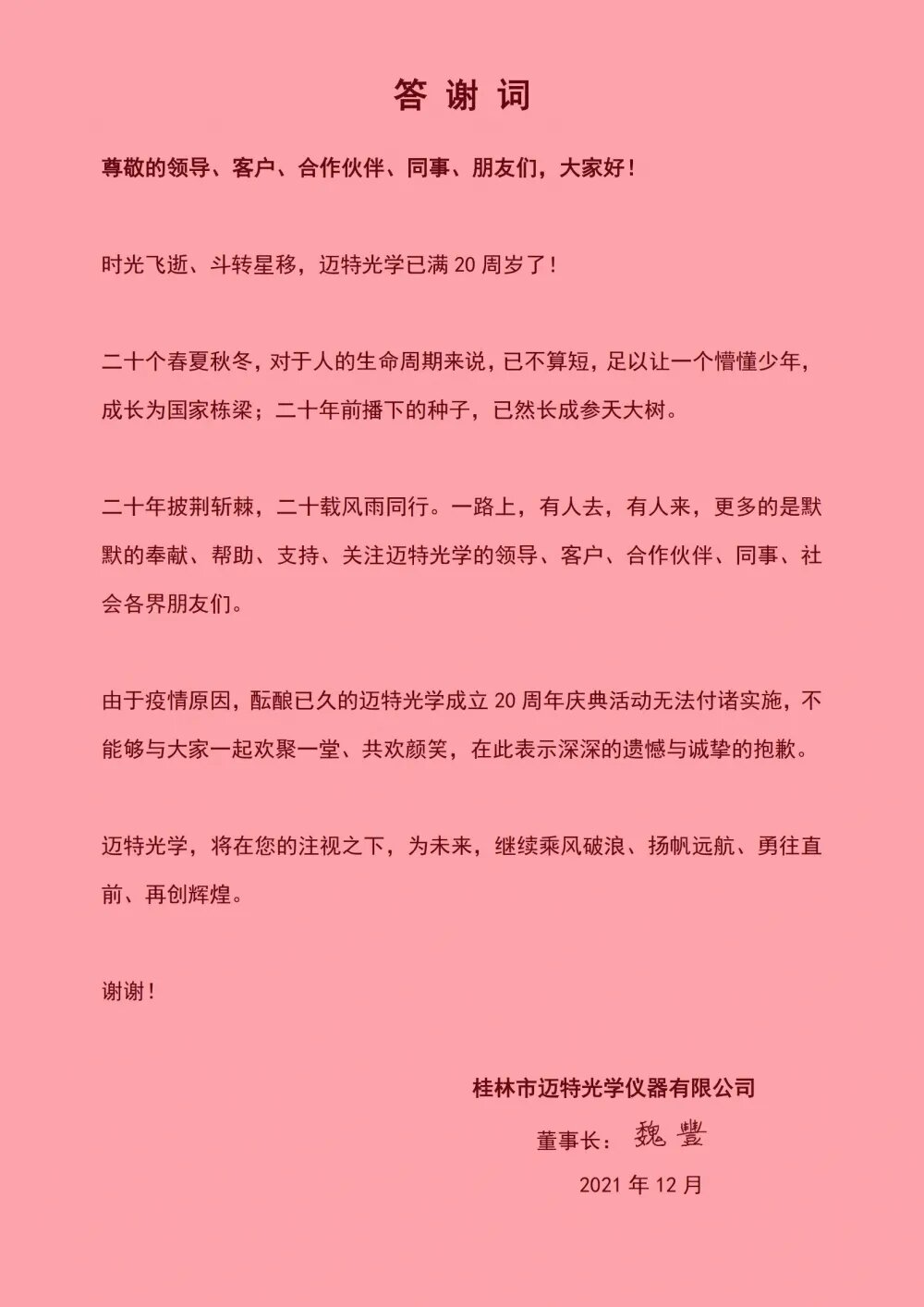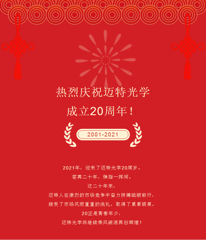 熱烈慶祝 邁特光學 成立20周年!